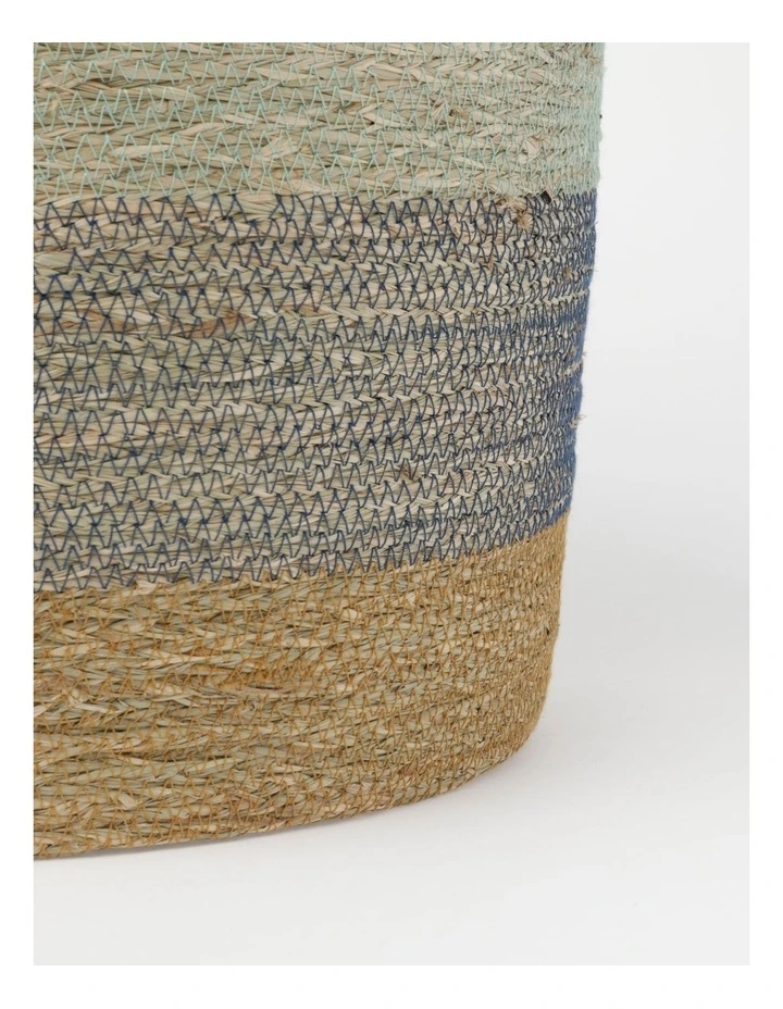 Australian House & Garden Summer Seagrass Storage Basket Small 36x36x28cm in Natural/Blue