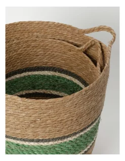 Australian House & Garden Tarrabool Set Of 2 Baskets with Green Band 45 &37cm in Natural/Green