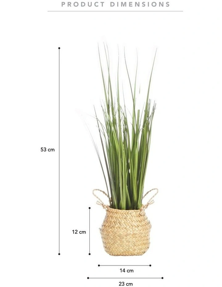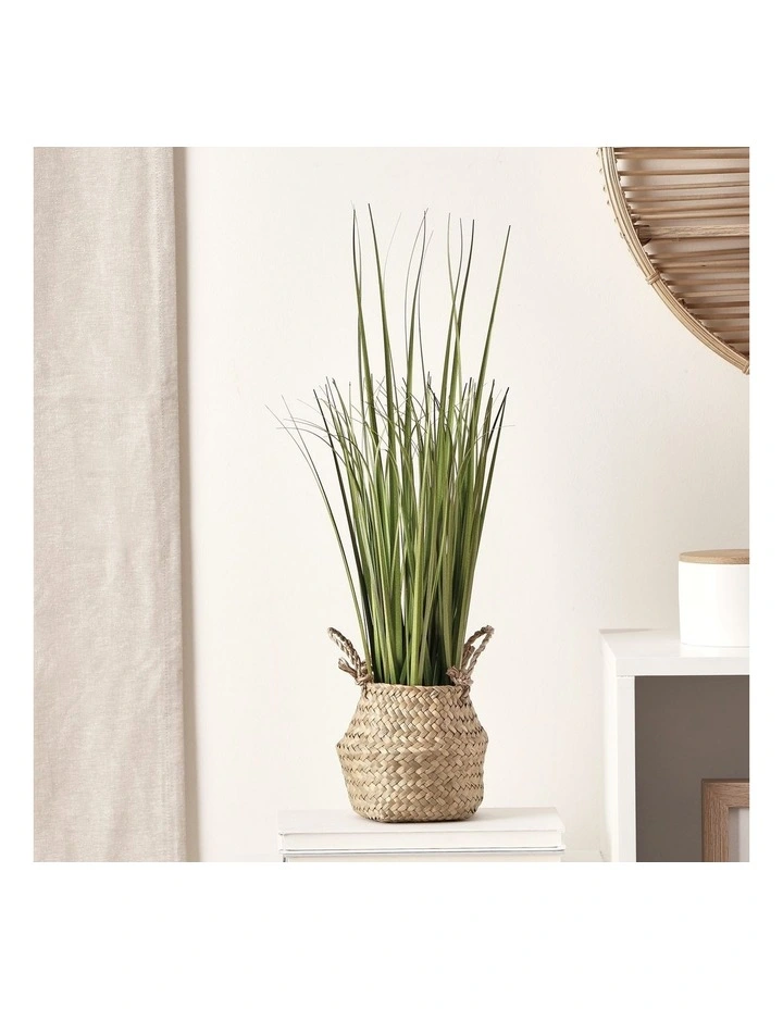 Add the beautiful slender leaves of the Cooper & Co. Artificial Onion Grass in Woven Basket to any room at home or office to create a green space. Made of high-quality soft and realistic plastic, the artificial onion grass plant is nestled inside a beautiful woven basket for versatile appeal. It is low maintenance and needs minimal attention and cleaning compared to real plants.