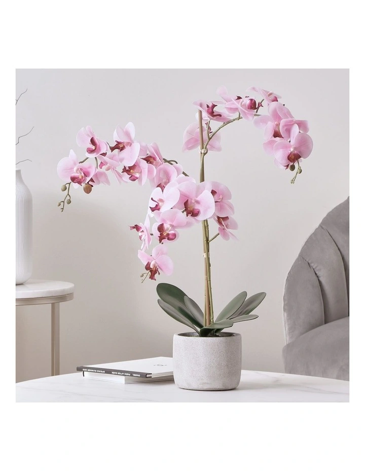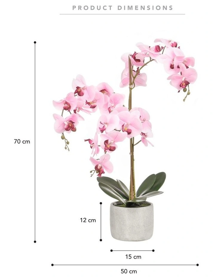 Welcome the delicate beauty of orchids into your space without the worries of pruning and watering with the Cooper & Co. 70cm Artificial 1-Stem Pink Orchid.