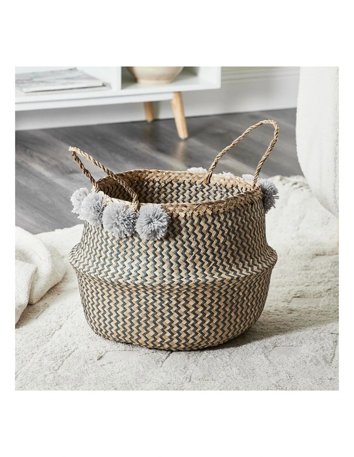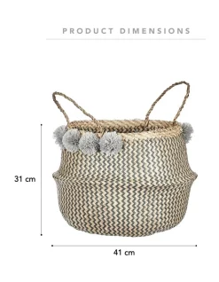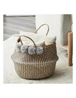 Made in Vietnam from seagrass, this flat-bottomed basket will stand upright and open. Its flexible structure allows you to compact it down when storing. It’s perfect for holding newspapers, pot plants, small umbrellas, and other small household items.Β Water may damage the paint in the basket, please do not put it in a damp place.