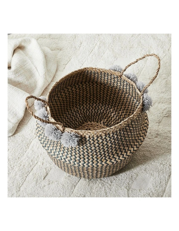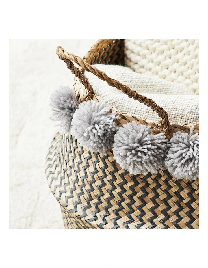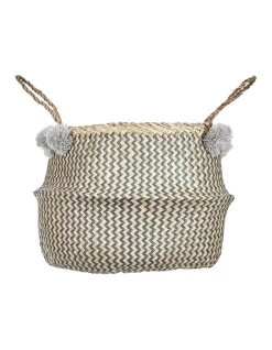 Keep any space in your home tidy and stylish with the Cooper & Co. Chevron Pom Pom Hamper Basket Natural.