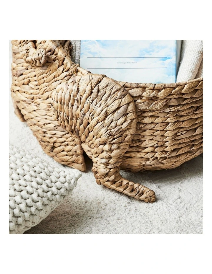 Made in Vietnam from water hyacinth, this flat-bottomed decorative planter will stand upright. Its sturdy metal frame will ensure it is kept in place. It’s perfect for small toys, books, kids’ shoes, and other small household items.Β