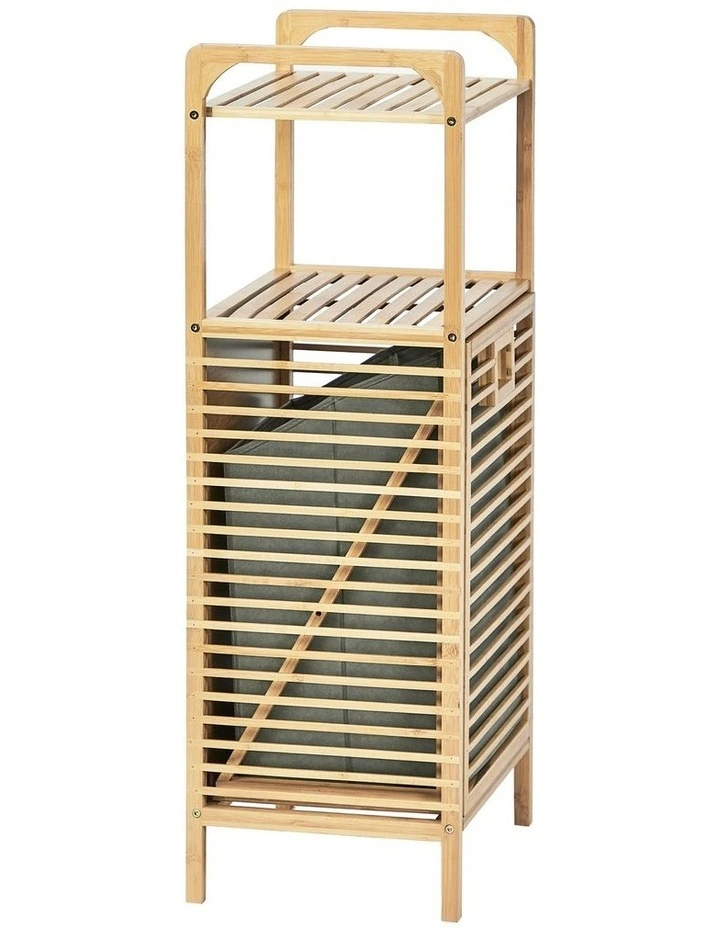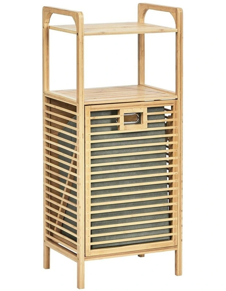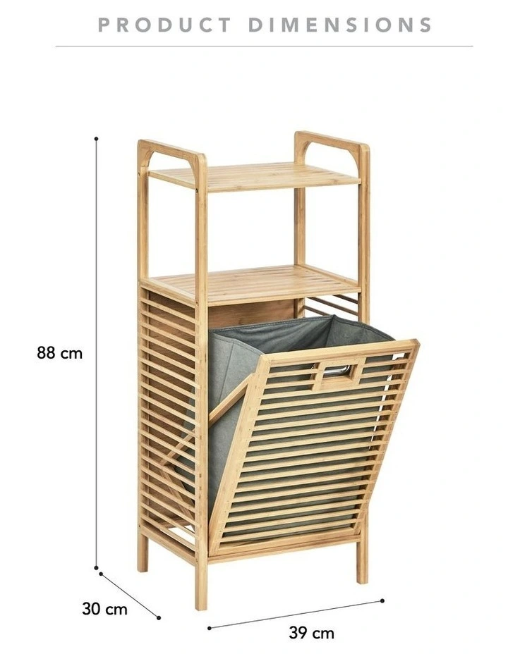 The two shevles are ideal for storing additional items, while the removable hamper basket is perfect to keep clothes, towel or any other laundered items in. The natural look and compact design gives this storage unit mass appeal in any space it’s placed in.