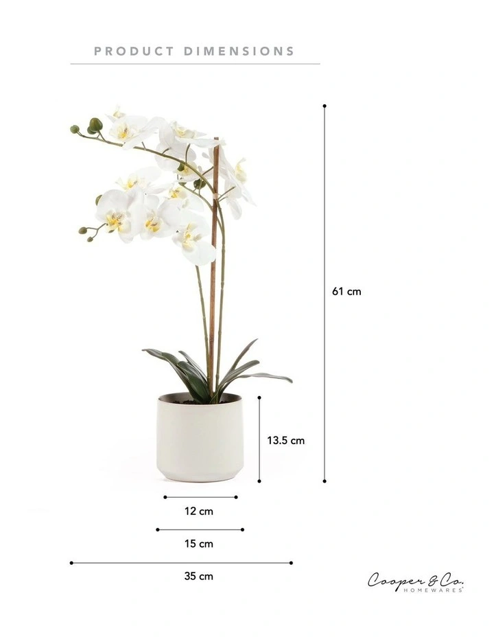 Nothing demands attention like white orchids in full bloom. And nothing grabs attention like the 61cm Orchid faux potted plant by Cooper & Co.