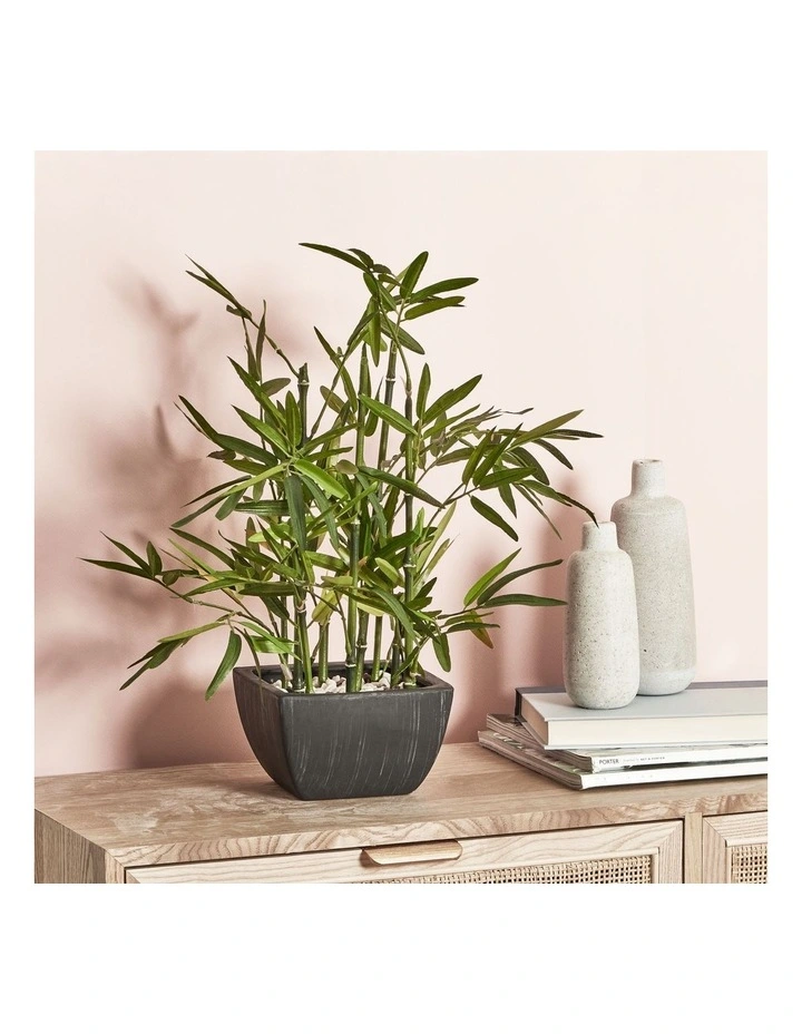 Give your living area or patio a refreshing change of greenery with a Cooper & Co. 46cm Artificial Bamboo Plant With Pot – Green.