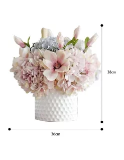 Baby’s breath, also known as Gypsophila, symbolises everlasting love and are popular at weddings and baby showers. This arrangement showcases the purity of the flower with it’s delicate round lavender petals nestled amongst painstakingly detailed large leaves . The leaves have intricate vein detailing and jagged edges which contrast with the fragile beauty of the flower.