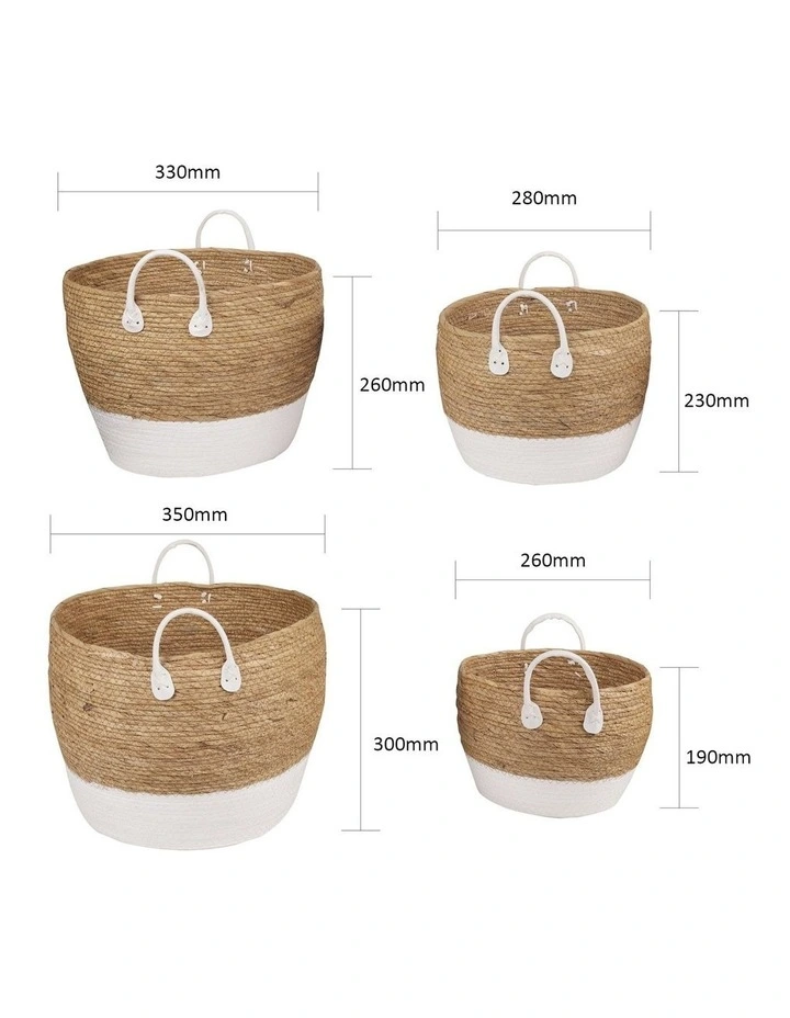 - Basket dimensions: 1 x small – 26x26x19cm,1 x small – 28x28x23cm , 1 x medium – 33x33x26cm , 1 x large – 35x35x30cm