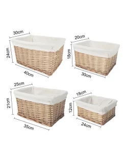 - Basket dimensions: 1x mini -24x18x12cm, 1 x small – 30x20x18cm, 1 x medium – 35x25x21cm, 1 x large – 40x30x24cm
