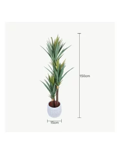 With 6 lush green Yucca heads, this artificial Yucca Tree looks just like a real one. With a long timber trunk stretching upwards, the overall height of the Tree is 150cm – ideal for living rooms, dining room, board rooms and office environments. It comes potted and ready to go, so all you need to do is place it into your favourite pot or planter. No maintenance, no fuss, just a perfect tree all year round.