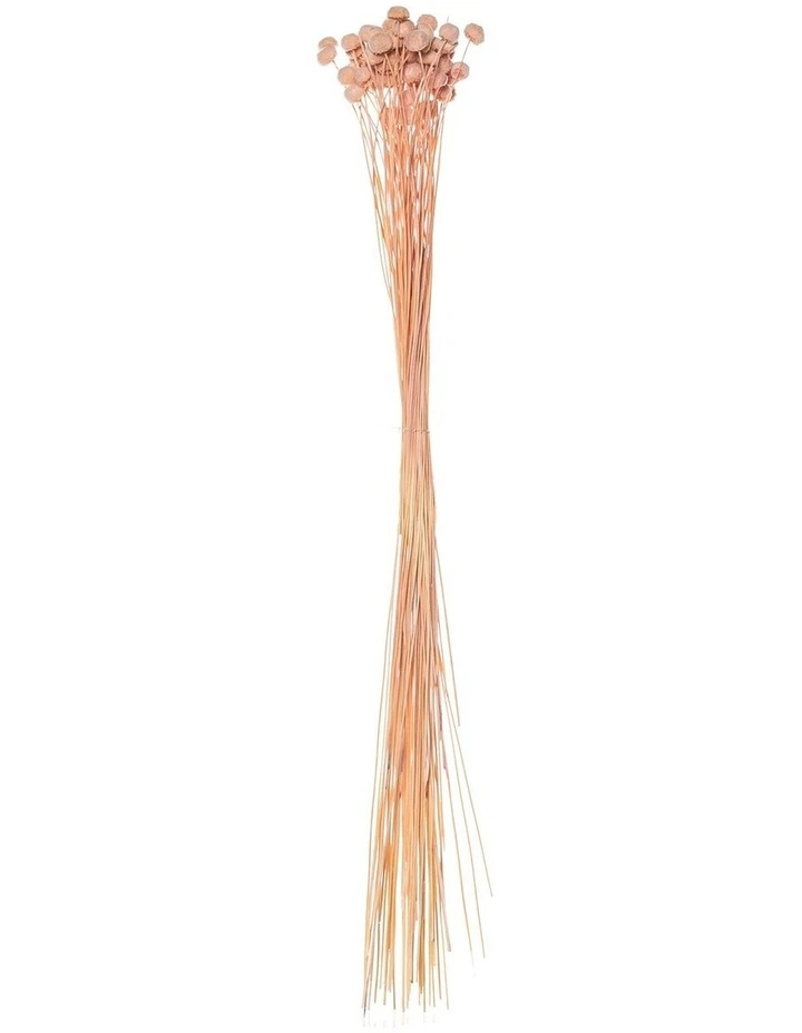 This charming bundle of button chrysanthemums is a natural product that has been preserved through a special process. The stems and sweet, rounded flower heads have been coloured soft pink for a vibrant and warm look. As dried flowers are so on trend, these stems will look glorious in a slender vase of their own. Or use them for colour, texture and bulk in a stunning dried flower arrangement.ย