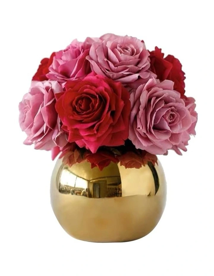 Real Touch Luxury Artificial Red and Pink Rose Arrangement with Room Spray; Plastic Plant; Ceramic Golden Pot